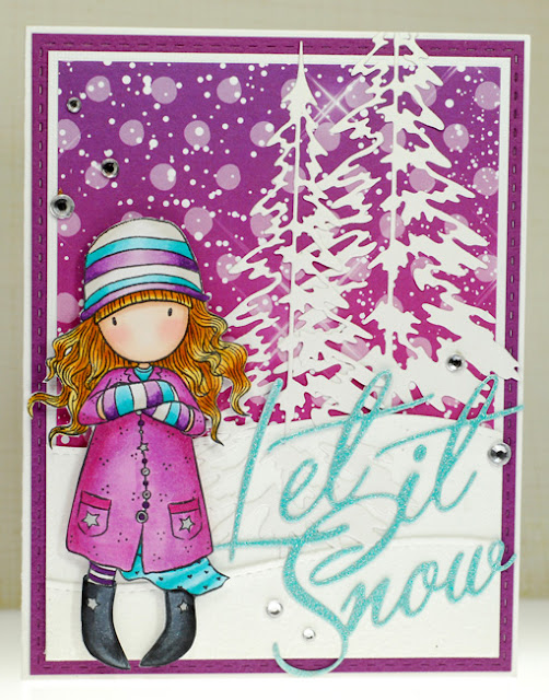 It doesn't happen often that I make up multiple cards using the same stamp right in a row but last week I posted a blue version of this Gorjuss Girl called Toadstools and today I have a pink version to share. I couldn't resist playing with another beautiful winter paper from my local Hobby Lobby store taking this into a much brighter color palette than the first card. It's kinda funny how the same stamp can take on a whole different personality just by changing up the color choices. This one definitely looks less 'Silent Night' and more 'Rockin' Around the Christmas Tree'... LOL! ;)